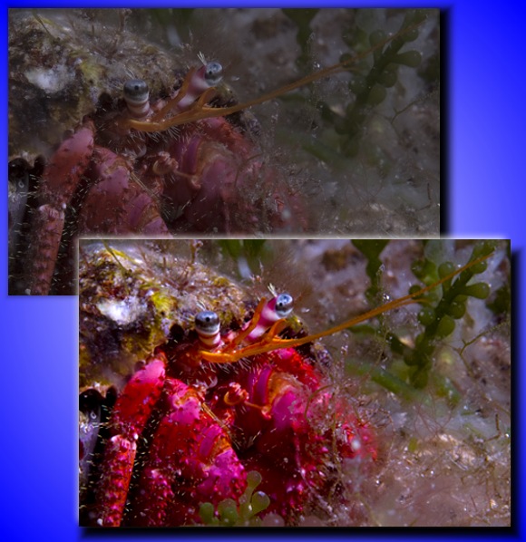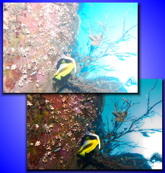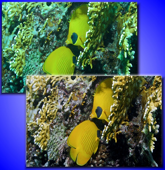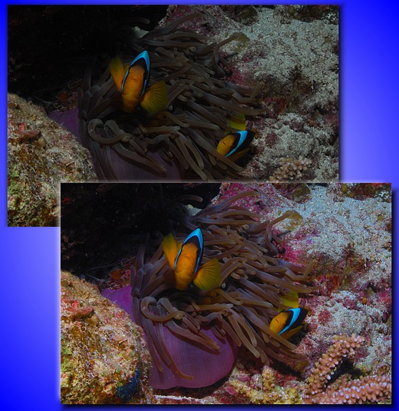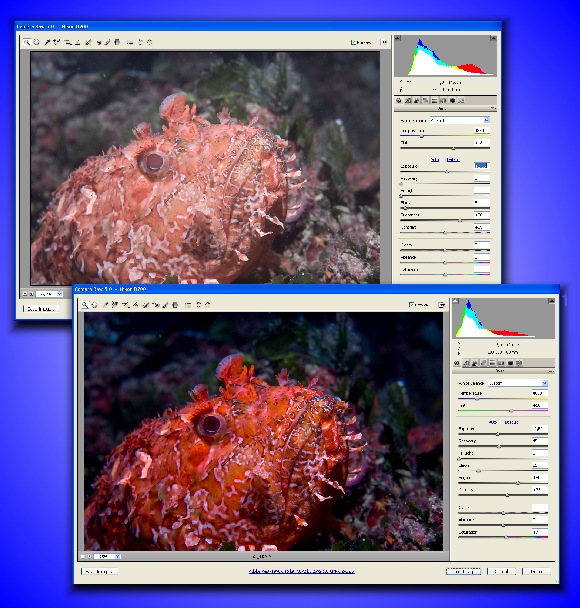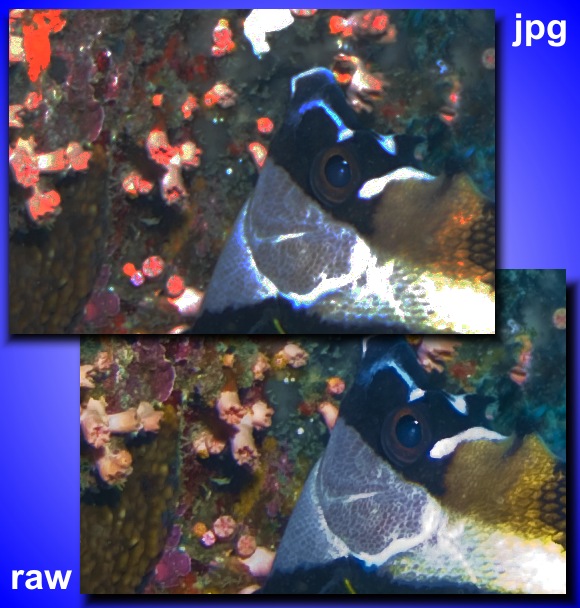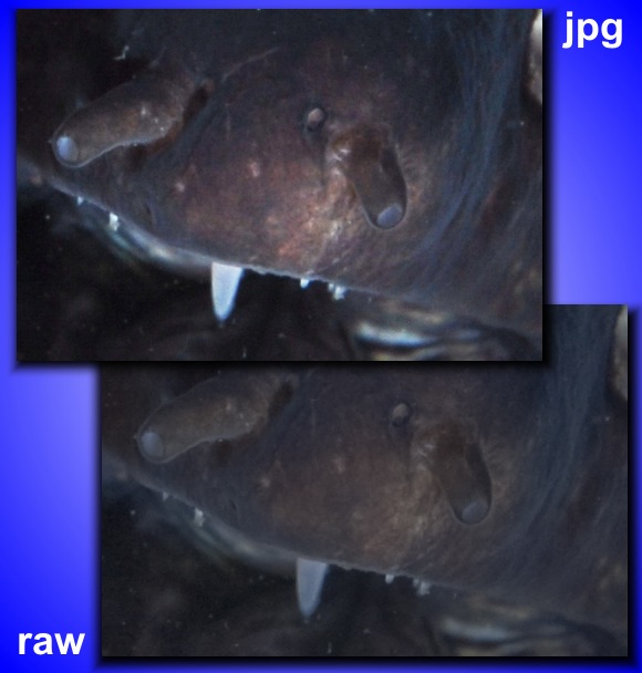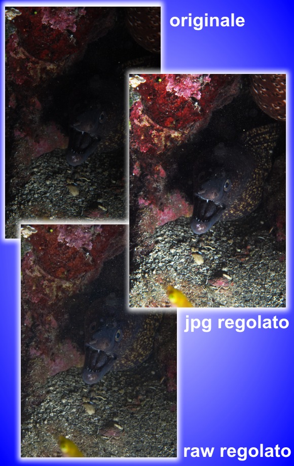 Confronto raw jpg: i particolari del nasone della murena sono più leggibili.
