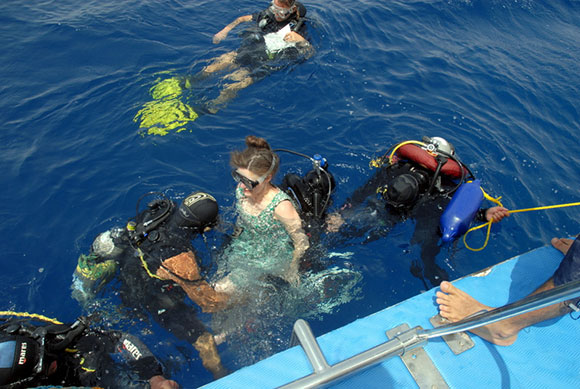 Il Camel Dive Club & Hotel di Sharm ha accolto con entusiasmo l’idea di Sue, offrendo il proprio supporto logistico al team inglese. Sono stati necessari tre viaggi per completare le riprese necessarie a comporre i video delle performance, nella piscina del Camel Hotel e nei giardini di corallo lungo la costa di Sharm.