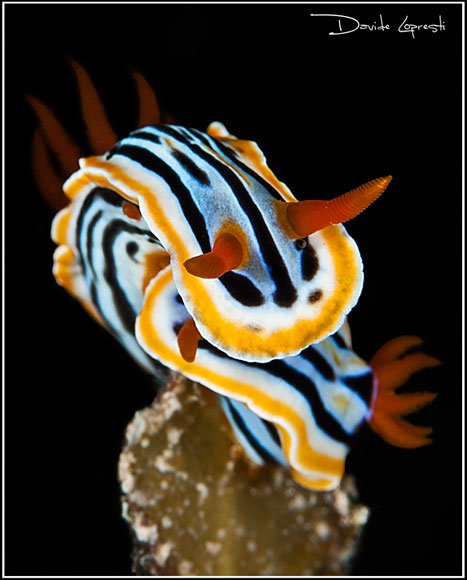 Mi chiamo Davide Lopresti, vivo a Portovenere in provincia di La Spezia, pratico immersioni da circa 3 anni e da circa due anni mi sono avvicinato alla fotografia subacquea, prima con la compatta e da circa un anno con la Reflex, la mia passione per la macrofotografia ha reso il 100 mm macro (a volte combinato con una lente macro addizzionale) la mia ottica preferita che alterno al Tokina 10/17 fisheye per le foto ambiente.