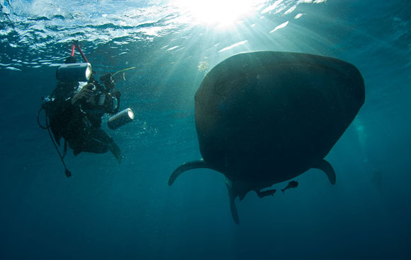 Giustamente la nostra specie è portata a porsi delle domande e a cercare delle risposte, a descrivere il mondo che ci circonda; atteggiamento mentale che è alla base dello sviluppo della scienza, e mi è familiare. Ma al termine di tante ore passate in acqua con gli squali balena, davanti allo spettacolo della notte equatoriale, con una birra fresca a fianco e le luci del bagan che bucano il buio, il pensiero che torna alle gigantesche forme degli squali non cerca di ricostruirne i misteriosi circuiti migratori. Piuttosto torna al momento magico in cui il gigante avverte la mia presenza e scarta evitandomi con una mossa da torero, sfilandomi a fianco solenne, vera divinità del mare… che abbiano ragione i pescatori?