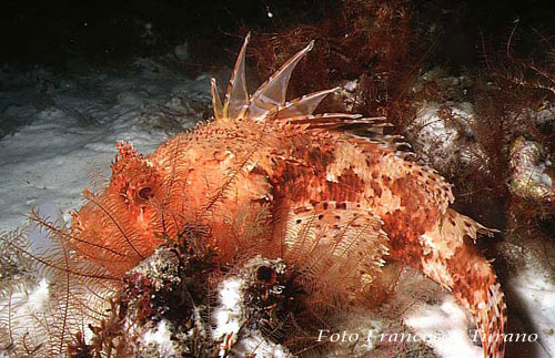 Incontrare uno scorfano, sott’acqua, è cosa frequente. Incontrare uno scorfano significa osservare un pesce da molto vicino, vista la sua indole tranquilla. Ma incontrare uno scorfano, di qualsiasi dimensione e a qualsiasi profondità, significa anche avere l’occhio abituato a selezionare forme e colori del fondo, per individuare uno dei principali campioni nell’arte del mimetismo. Le diverse specie presenti in Mediterraneo consentono diversi approcci un po’ a tutte le profondità della fascia costiera. Appena immersa la testa sotto il pelo dell’acqua possiamo rinvenire gli scorfani neri e gli scorfanetti, già ben nascosti tra le pietre dei fondi detritici, rocciosi, o anche alla base delle praterie di posidonia. Guadagnando alcuni metri di profondità si possono poi incontrare scorfani più strani, diversi secondo il tipo di fondale. Ma il protagonista indiscusso delle immersioni in Mediterraneo nella fascia compresa tra i trenta e i sessanta metri di profondità, è lo scorfano rosso. Il suo nome scientifico è Scorpaena scrofa anche se è meglio conosciuto come scorfano rosso. Ma lo conoscete veramente questo splendido pesce? E avete ancora il coraggio di dire che lo scorfano è “brutto”?