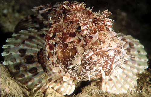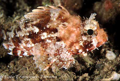 Per quanto riguarda gli incontri possibili nel mondo sommerso a portata di sub, se escludiamo dall’elenco lo scorfano corallino e lo scorpenode mediterraneo (quest’ultimo tra l’altro raro) per la profondità alla quale vivono, solitamente superiore ai cento metri, lo scorfano di fondale, lo scorfano rosa, lo scorfanotto e lo scorfanetto carenato, specie sempre di profondità e praticamente indistinguibili dai un non addetti ai lavori, visibili solo nei banchi del pesce perché pescati con lo strascico, ci rimangono solo lo scorfano rosso, lo scorfano nero e un certo numero di piccoli scorfani, dell’ordine dei 5-10 cm di lunghezza e con colori variabili, che spesso chiamiamo scorfanetti senza sapere in realtà di cosa si tratti. Tra l’altro le numerose livree assunte dallo scorfano rosso traggono in ulteriore confusione l’osservatore e rendono l’argomento scorfani ancora più intrigante. Per chiarire un po’ le idee e per stimolare gli studiosi, che spero non mi chiedano di sacrificare degli esemplari per contare i raggi delle pinne o altro di simile, ho raccolto una documentazione fotografica che mi ha portato all’individuazione di situazioni alquanto nuove e interessanti.