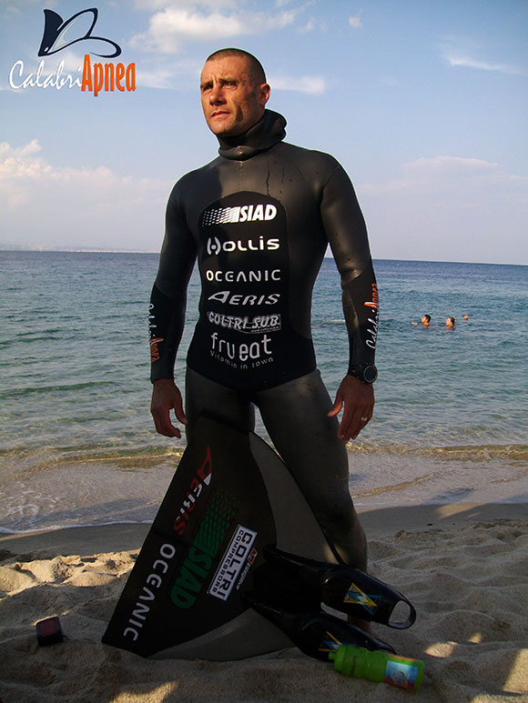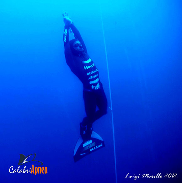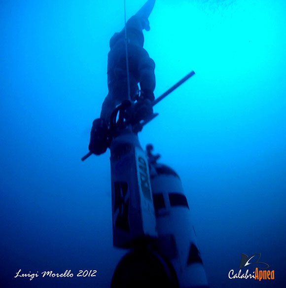 Marzo 2012: è con ben 6 mesi di anticipo che mi arriva la prima telefonata da “CalabriApnea”, la ASD che si occupa di organizzare l’evento relativo al tentativo di battere i record di apnea profonda da parte di Homar; “potresti partecipare quale subacqueo di assistenza durante le immersioni del record?” “si tratta di fare immersione ad oltre 130mt di profondità, nel blu (poi si rivelerà nel nero!!), in un punto che ha il fondo ad oltre 170mt”; è con queste parole che Luigi mi invita a partecipare a questo evento singolare che avrebbe avuto luogo alla fine dell’estate nella baia di Soverato, in Calabria (luogo a me noto e già frequentato date le mie origini calabresi); … beh… non ci metto molto a dare una risposta: immersioni profonde?? Condizioni difficili??