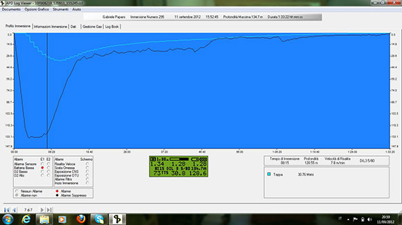 134,7 mt di profondità nel mio solito controllo di sicurezza sotto il piattello