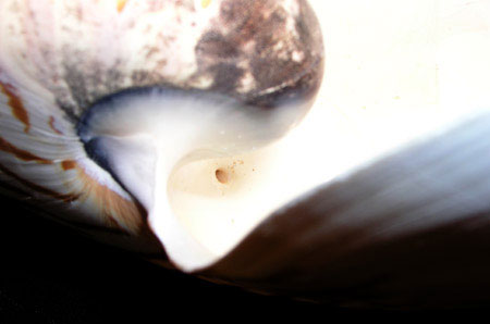 Questo cefalopode si differenzia dagli altri per il fatto di vivere all’interno di una conchiglia di raffinata eleganza, che utilizza anche come galleggiante. Durante le ore diurne vive in profondità, fino a 600 metri, durante la notte risale alla superficie risalendo verticalmente; fluttua a mezz’acqua grazie al gas contenuto nella sua conchiglia e può regolare il suo assetto immettendo o espellendo acqua nelle cellette della conchiglia stessa, attraverso un piccolo canale che le mette in comunicazione una con l’altra. La bellissima conchiglia spiralata alla nascita consta di sette camere, con un diametro totale di circa 2-3 centimetri, si sviluppa man mano che l’animale cresce, chiudendo con setti le spire divenute troppo piccole e intrappolando all’interno delle piccole camere così create l’aria che garantirà il galleggiamento. Quando l’animale raggiunge la maturità la conchiglia ha raggiunto un diametro di 25-30 centimetri. Questa preziosa casa è un capolavoro di ingegnerie: la sua curvatura le conferisce una forza enorme, può sopportare infatti pressioni equivalenti alla profondità di 650 metri! Il nautilo cambia celletta ogni mese lunare circa, e questo si rivela osservando la struttura dei setti: questi sono infatti costituiti da circa 30 sottili lamelle prodotte giornalmente dall’animale.