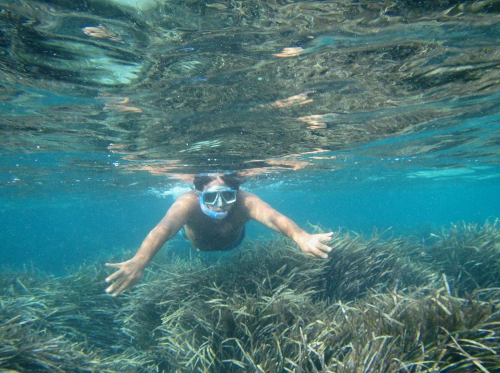 La Posidonia oceanica cresce folta e rigogliosa. Questa pianta (non è un’alga) vive solo nel Mediterraneo ed è importantissima perché ossigena l’acqua e ospita un’infinità di organismi. Quando le sue foglie nastriformi cadono, finiscono sulla spiaggia formando accumuli, chiamati “banquettes”, che taluni interpretano, erroneamente, come “mare sporco”.