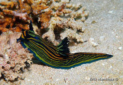 Ningaloo è davvero speciale per scoprire nuovi e splendidi esemplari di nudibranchi, dal più comune “Chromodoris westraliensis” (rintracciabile un pò ovunque nel Western Australia) fino ad arrivare ai più rari e difficili da scovare come il “Thurdilla moebii”, il “Hopkinsia” o ancora il “Chromodoris cf. africana”.