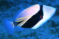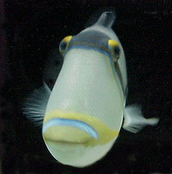 Questo cromatismo provoca nell’osservatore la sensazione fittizia che le fauci del pesce siano più grosse rispetto a quanto visto negli altri Balistidi.