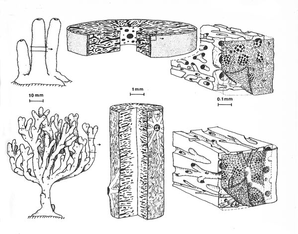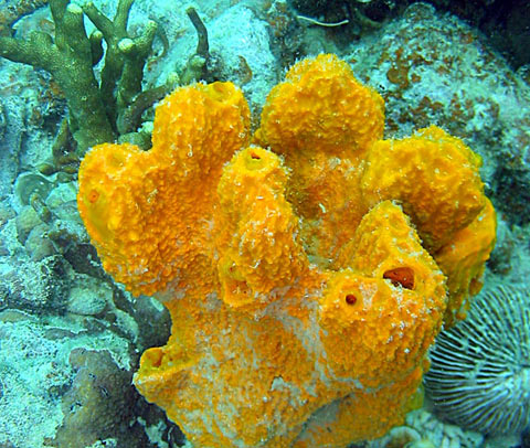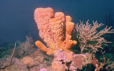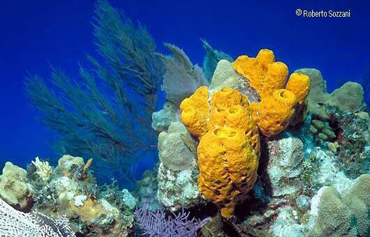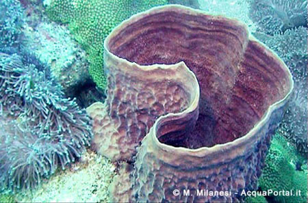 A prima vista si penserebbe che le spugne appartengano al regno vegetale. La loro forma irregolare, diversa da un individuo all’altro, e soprattutto la loro immobilità indurrebbe a propendere per tale tesi; in realtà appartengono al regno animale. La scienza occidentale fece tale scoperta nel 1765. In virtù di ciò sappiamo che le spugne sono animali molto particolari, assai diversi da qualsiasi gruppo. Non soltanto non presentano una parte anteriore e posteriore, ma non hanno bocca né ano e, soprattutto sono privi di tessuti. Ciò significa che le spugne sono essenzialmente degli ammassi di cellule non unite a formare muscoli, nervi, epidermide o altri tessuti. Quindi, non possono muoversi, reagire o sentire se non impercettibilmente. Ma cosa intendiamo per spugna? E’ importante sottolineare che le spugne da bagno, quelle che usiamo quotidianamente, sono, in realtà, ciò che resta dell’animale dopo l’asportazione di tutte le sue cellule in seguito a particolari processi di lavaggio e sbiancatura. Resta la delicata trama scheletrica costituita da una fitta e finissima rete di proteine di sostegno. Questo scheletro, morbido e spugnoso, ha la proprietà di essere 15 volte più assorbente della tela grazie al fatto che la sua superficie interna è di ben 10 metri quadrati per grammo di materiale. Tale proprietà fa delle spugne un prodotto pregiato, usato soprattutto a scopi industriali. Le spugne commerciali comprendono pochissime specie molto comuni. Nei mari di tutto il mondo vivono però oltre 5000 specie di varie forme e dimensioni.