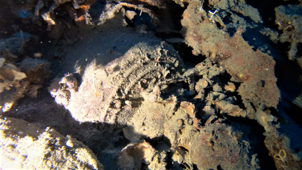 Una volta tornati in Italia, osservando attentamente i video e le foto cercando di scorgere qualche piccolo particolare sfuggito in immersione, alcuni nostri amici hanno iniziato a metterci in testa l’affascinante idea che quel posteriore di cannone che spuntava da sotto le macerie poteva essere in realtà la campana del Re d’Italia.
