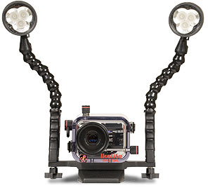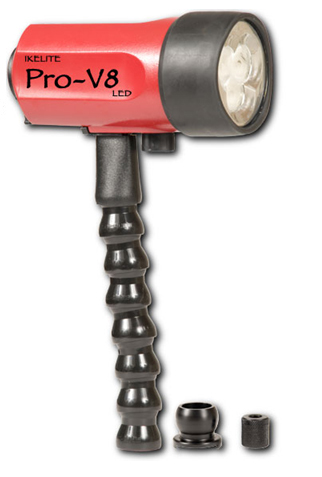 Ikelite Pro-V8 LED include lite Pro-V8 testa, batterie alcaline, il braccio della flessione e l’alloggiamento della leva video