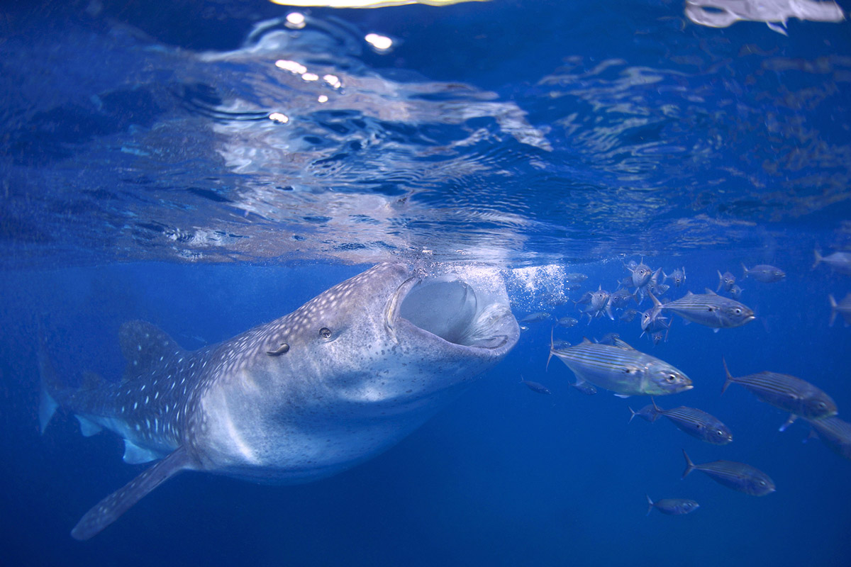 Lo squalo balena può filtrare oltre 6.000 litri d’acqua ogni ora, per trattenere il nutrimento. Ha un olfatto molto sviluppato, utile per rilevare concentrazioni di uova di pesce o plankton da grande distanza.