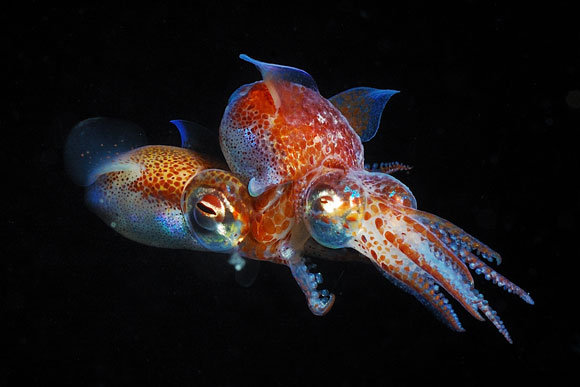 Squadre di calamari (Loligo vulgaris) in perfetta formazione d’attacco