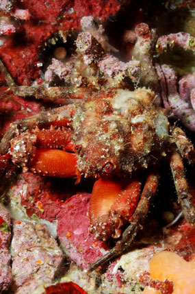 gamberi e granchi escono impavidi alla ricerca di cibo.