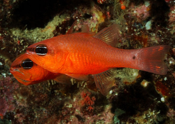 negli anfratti facendo compagnia ai Re di triglie (Apogon imberbis) mentre