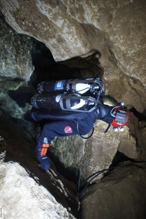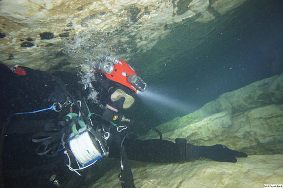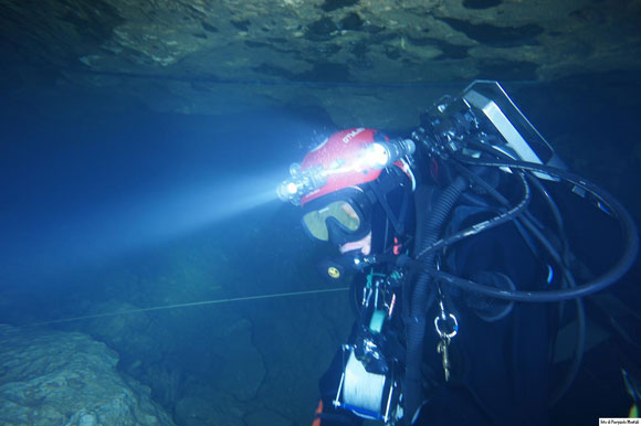 L’immersione speleo subacquea ha infatti, oltre che con sé tutte le sue proprie caratteristiche di peculiare attenzione ai dettagli della sicurezza e dell’avanzamento, anche il problema aggiunto, per il fotografo, del trasporto nei cunicoli allagati dell’attrezzatura, che spesso è fatta di luci con lunghi bracci laterali e pesanti pacchi batterie.