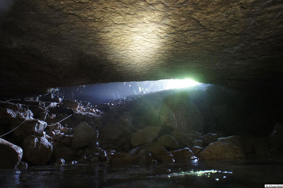 Ecco che quindi, una volta in acqua, lasciamo l’ingresso basso e a vista sole alle nostre spalle per orientarci decisi verso la galleria est, che è poi quella più lunga e che si divide nei tre sifoni citati.