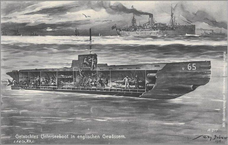 Il battello che von Fischel comanda durante la Grande Guerra è il terzo di una fortunata classe composta da 3 Uboot che, purtroppo per noi, faranno strage di navi in Mediterraneo: l’U63 di Kurt Hartwig, l’U64 di Robert Moraht ed il suo, l’U65. Sono delle piccole ma efficaci macchine da guerra, terrore dei marinai alleati di tutto il mondo: 810 tonnellate in emersione, 927 in immersione; 68 metri di lunghezza per 6,3 di larghezza che, tolti guscio e casse di zavorra, fanno rimanere ben poco spazio vivibile ai 36 uomini dell’equipaggio. I motori diesel di 2200 cavalli di potenza possono spingerlo fino a 16,5 nodi, con un’autonomia a velocità di crociera di circa 9000 miglia; i motori per l’attacco sono però quelli elettrici, usati in immersione, che lo spingono a 5 nodi ed in caso di necessità fino a 9 per brevissimi periodi, ad una profondità massima di 50 metri. È armato con un cannone da 88 mm e soprattutto è dotato di 4 tubi in grado di lanciare la nuova, terribile arma, il siluro. L’U65 è di base a Pola, il porto principale della marina austroungarica, e da lì parte per le sue devastanti incursioni in Mediterraneo. È una dura vita, quella dei sommergibilisti della Prima Guerra Mondiale (e non solo), con un’alta percentuale di possibilità di non fare ritorno a casa.