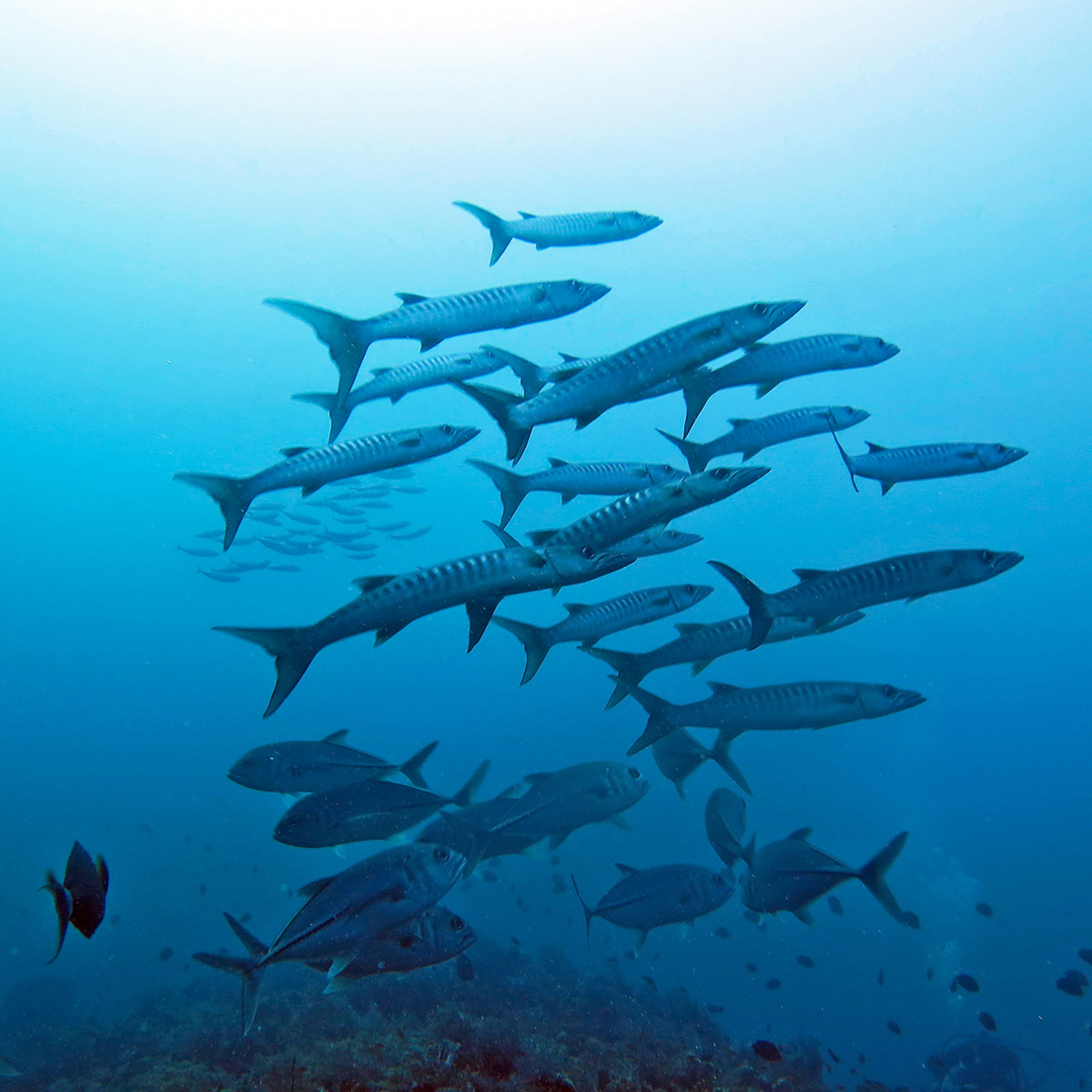E quando la corrente irrompe vorticosa sulla punta sud del comprensorio corallino, il fondale si riempie di vita frenetica. Risalgono dagli abissi, squali grigi, squali seta, squali pinna bianca di reef e aquile di mare, eleganti, maestose, magnifiche. Un tripudio di baldanza esuberante e festosa.