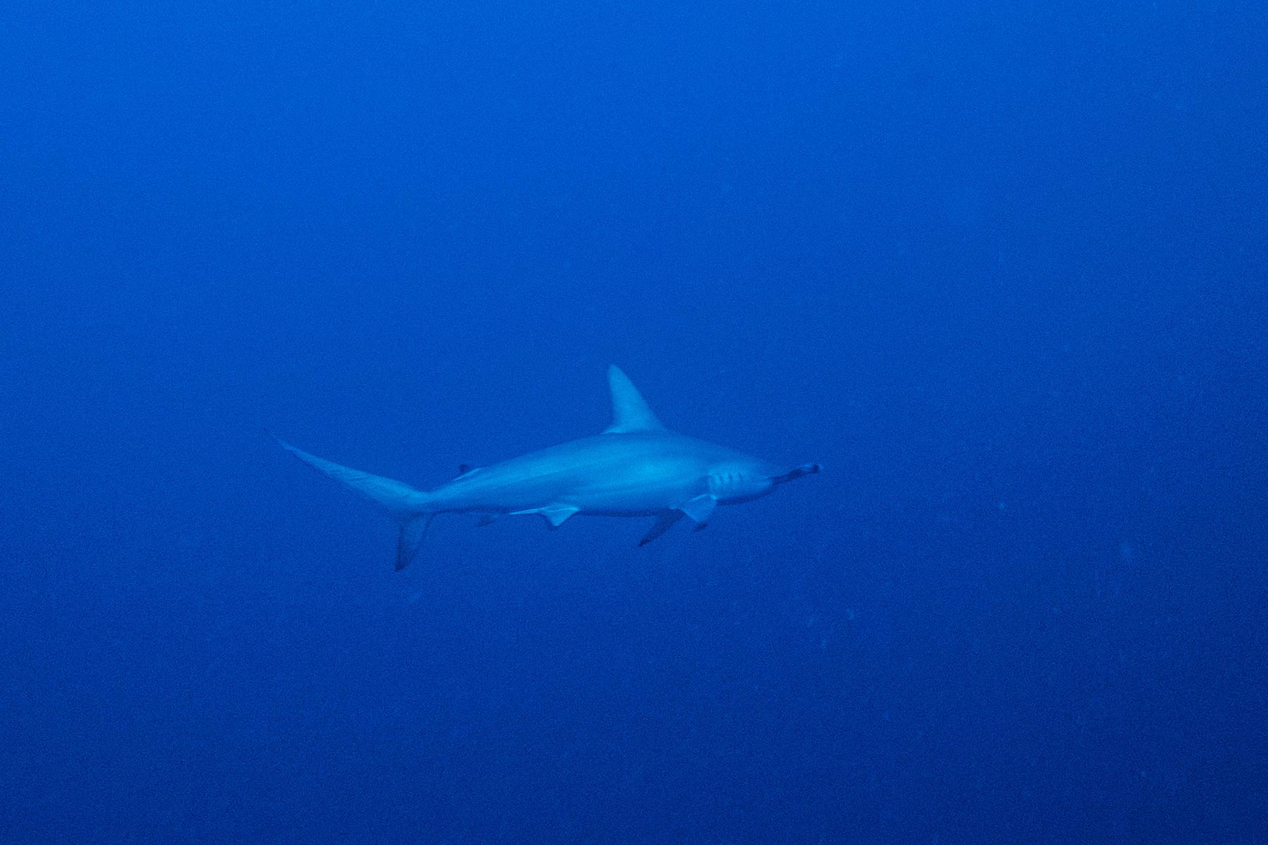 Immersione nel blu. Gli occhi incollati al fondale, scuro, occulto, pieno di mistero. Guardo a destra, a sinistra, mi volto e all’improvviso mi trovo davanti uno splendido squalo martello smerlato che mi osserva. È apparso così, dal nulla, è venuto a conoscermi, curioso, intraprendente, provocante. Scatto senza pensare, una foto unica, preziosa, vittoriosa. Entusiasmo, gioia. Euforia, euforia d’azoto, estasi da profondità, tutto insieme. Ma soprattutto un regalo inestimabile, un omaggio al coraggio.