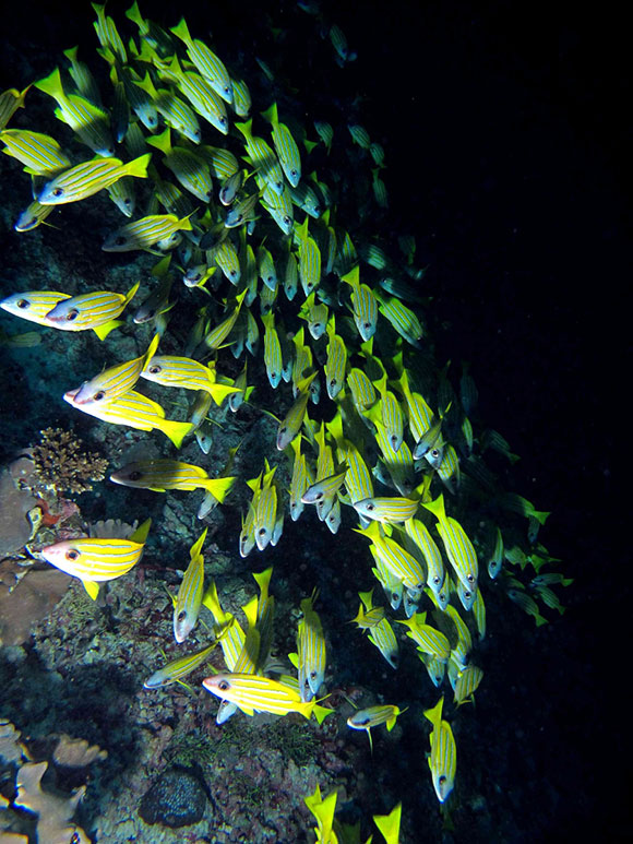 le torce subacquee per le loro scorribande notturne, ci accompagnano per tutta