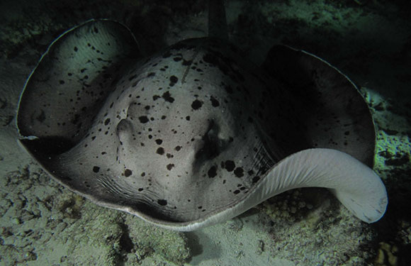 Trigoni e pinna bianca in caccia, ormai abituati a sfruttare