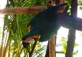 Tito, che vive sopra un albero di fronte ai locali del diving.