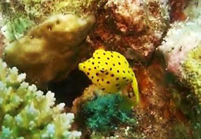 coralli una piccola testolina gialla a puntini scuri, della grandezza di una