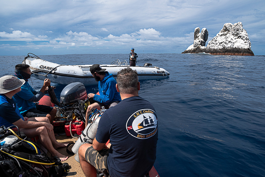 All’alba del mattino seguente siamo in pieno oceano attorniati da uno scenario irreale, preludio di un mondo parallelo. Dal mare immobile svetta verso il cielo Roca Partida, cima biforcuta di un vulcano ormai spento ricoperta di guano di sule e fregate, un luogo dal fascino irresistibile le cui pareti precipitano sott’acqua a profondità irraggiungibili.