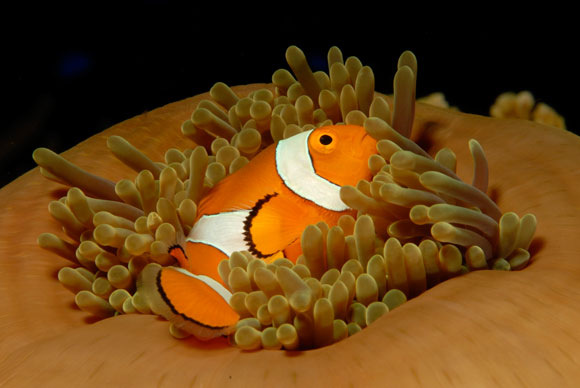 cavallucci pigmei, pesci pagliaccio di varie specie nei loro anemoni, splendidi