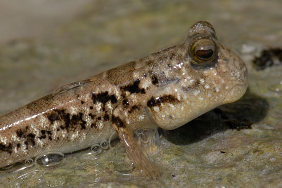 osserviamo degli strani pesci che corrono sulla battigia e su le radici delle