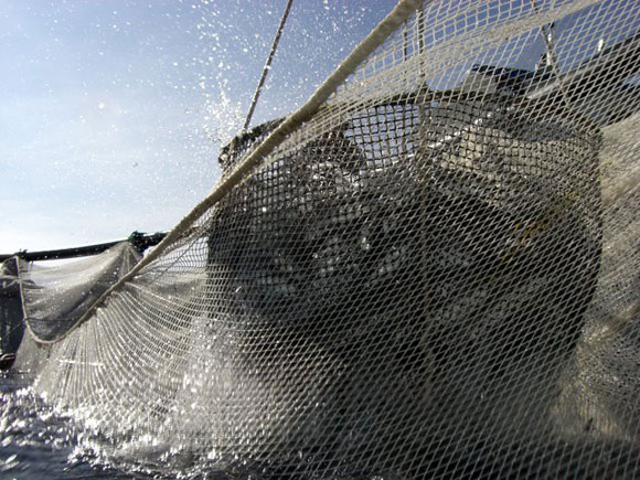 Mi sono commossa alla visione di queste enormi reti piene di pesce e della grande quantità di pesce di passo che staziona tutto intorno.