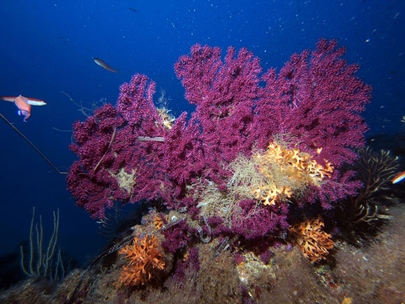 scogli letteralmente ricoperti da gorgonie rosse, la cui bellezza compensa la
