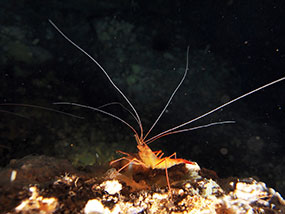 Le pareti della grotta sono realmente ricoperte da gamberetti, tanto da dare