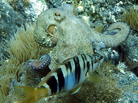 Frequente la presenza di grossi branchi di sarago fasciato.