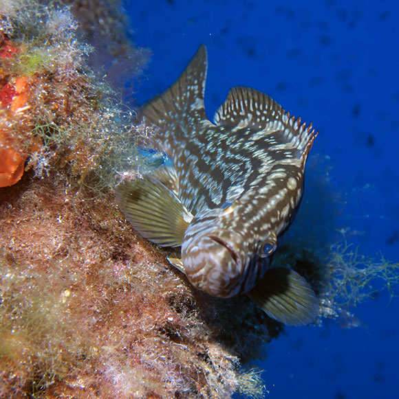 Nel blu, nella zona del relitto, frequente l’incontro con grossi dentici,
