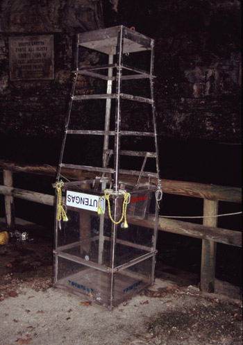 Il mercoledì, mentre sostituisco la batteria all’analizzatore di ossigeno, forse perchè ho la mente proiettata troppo avanti, rompo involontariamente il suo tubo in plexiglas e sono costretto ad annullare l’immersione. Ho la possibilità di contattare Nicola Donda il titolare di Aquatek che fortunatamente ne ha ancora uno in casa, e per non sprecare giorni preziosi vado da lui a Trieste per recuperarne un altro mentre Cichita e Cimabue si organizzano per terminare il lavoro di sostituzione delle corde nel tratto iniziale.