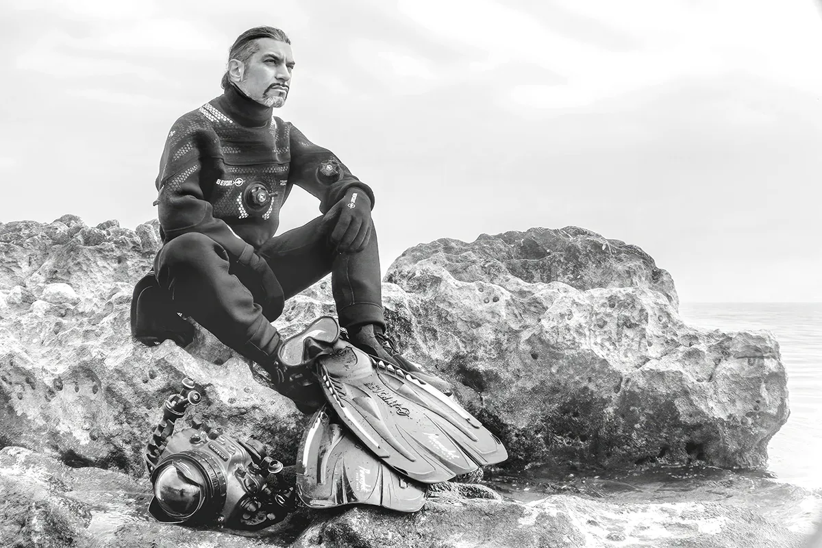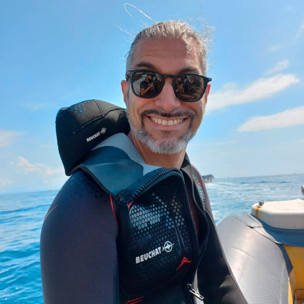 L’occasione di questa conversazione nasce da un invito di Beuchat che siamo felici di cogliere al volo, per cercare di carpire da Pietro alcune delle caratteristiche che lo rendono un “obiettivo” originale e potente nella subacquea.