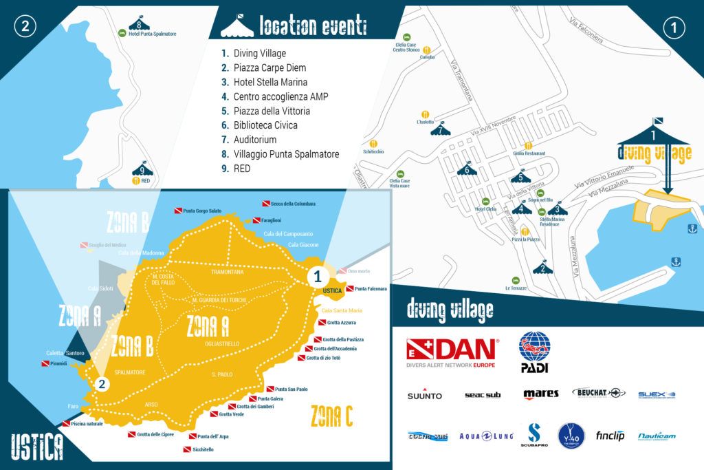 La settimana vede la collaborazione di Accademia Internazionale delle Scienze e Tecniche Subacquee e 58° Rassegna Internazionale delle Attività Subacquee, AMP Ustica, Soprintendenza del Mare, Comune di Ustica, Sea Sentinel, WWF, Reef Check, Partner tecnici, e con i diving center dell’isola.