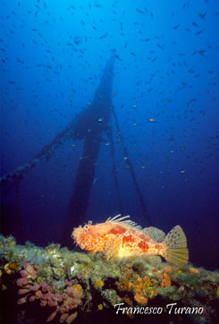 Anni fa, subito dopo la prima immersione, mi “innamorai” perdutamente di una nave affondata nel mare di San Vito Lo Capo, in provincia di Trapani. Fui colpito in particolare dall’abbondante presenza di fauna e, in particolare, rimasi affascinato dai numerosi e grossi esemplari di scorfano rosso. In un ambiente se vogliamo insolito, forse addirittura più adatto di altri alla vita di uno scorfano se consideriamo le sue abitudini legate alla disponibilità di cibo e al tipo di rifugi offerti dallo scafo, la Scorpaena scrofa ha trovato una casa eccellente, ancora oggi in buono stato di conservazione e letteralmente colonizzata da ogni sorta di invertebrato.
