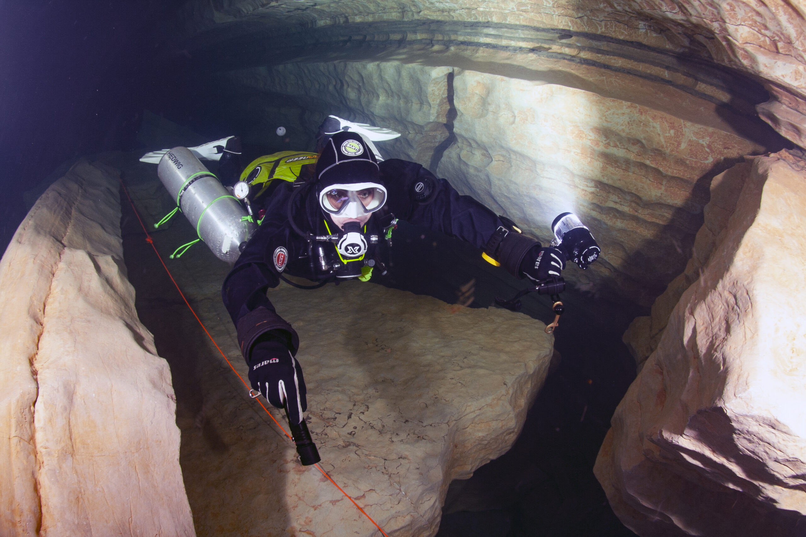 L’area francese è famosa perché la maggior parte dei subacquei europei prende lezioni di speleologia per non dover viaggiare in Messico o in Florida. Una delle grotte più famose di questa zona è Ressel. Ressel si trova nel villaggio di Marcilhac-sur-Célé. Nel cuore del Lot. La maggior parte delle immagini che si possono vedere in rete mostrano blocchi drammatici ed enormi di roccia bianca, strutture piatte e i pozzi di questa grotta. Le strutture sono belle, abbiamo un ampio parcheggio per le nostre auto e infine c’è anche un bell’edificio con una toilette. Dal parcheggio dobbiamo camminare per circa 100 metri per arrivare al punto di ingresso sul fiume Celé. Qui possiamo mettere tutta la nostra attrezzatura pronta per l’immersione.