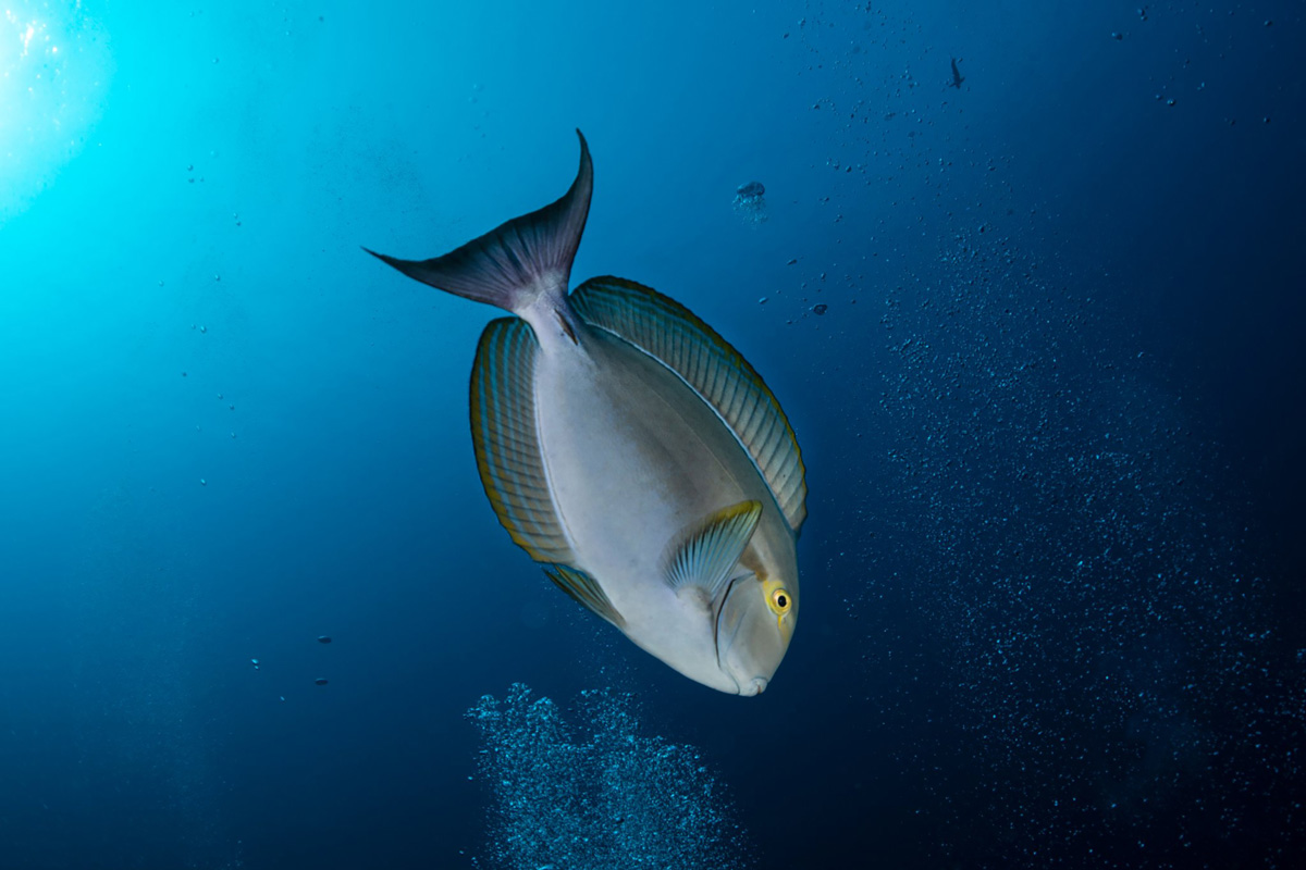 Ma non solo aquile di mare, qui ad aspettarci vicino alla scaletta della barca, dei piccoli pesci balestra e qualche esemplare di pappagallo, tutte specie che fino ad allora avevo potuto osservare solo nei miei viaggi subacquei in Mar Rosso.