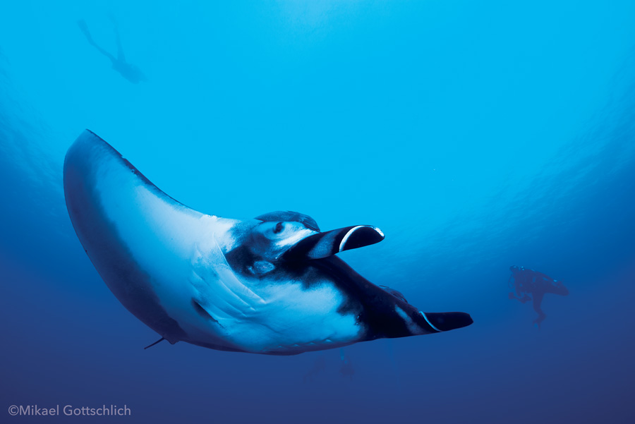 Immaginate di immergervi nelle acque turchesi, circondati da una miriade di pesci dai colori vivaci. Improvvisamente, emergono dalle profondità le mante giganti, con le loro ali sinuose che si estendono come quelle di un regale volatile sommerso. Compiono la loro danza aggraziata nell’acqua, mentre curiose si avvicinano ai subacquei.