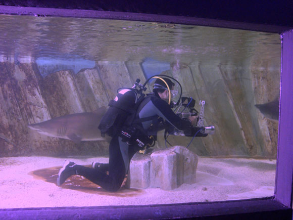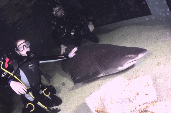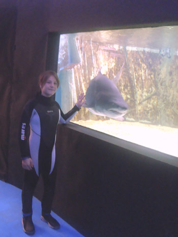 Nella vasca i 4 grandi squali toro, dapprima timorosi per la presenza della nuova ospite, hanno poi invece iniziato a girare intorno alla bambina, piuttosto incuriositi, lasciandosi anche avvicinare ed accarezzare dalla bambina a mani nude.