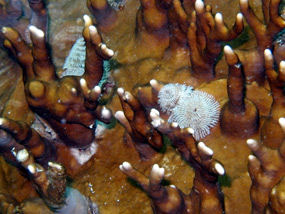 Una volta in acqua le emozioni non mancano, difficile trovare zone completamente spoglie e senza pesce, i pesci pappagallo sono moltissimi e diffidenti anche se meno colorati di quelli visti alle Maldive, i coralli sono molti e colorati. Solitamente i pesci si lasciano seguire e riprendere e non scappano alla prima bolla. (vedere filmatino). Le correnti consentono di farsi trasportare comodamente al ritorno dal giro così la seconda parte della immersione diventa ancora più rilassante.