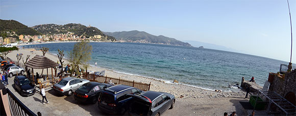 La vista da una camera dell’Hotel Capo Noli. Sullo sfondo l’isola di Bergeggi.