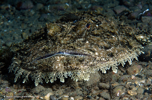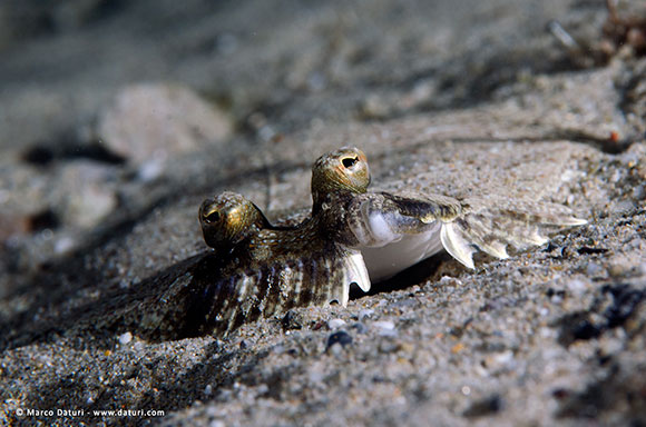 Guardate i due occhi sotto la sabbia… a sinistra del pesce.
