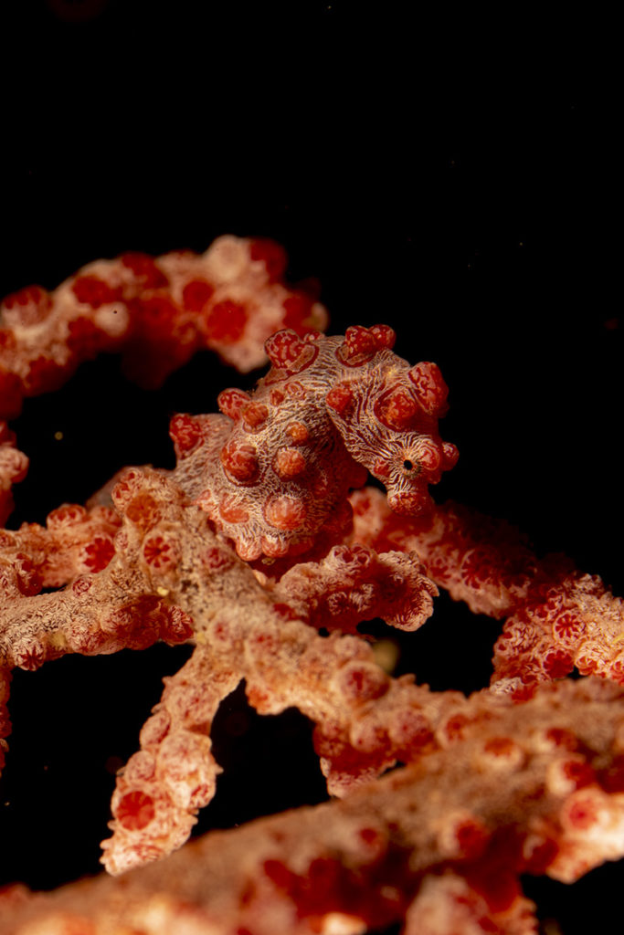 Lembeh è il paradiso per la macrofotografia: dai cavallucci pigmei, ai polpi imitatori, agli antennaridi pelosi, questo è il posto migliore per vedere ogni sorta di strana creatura, e per fotografarla con cura e attenzione per l’ambiente, appoggiandosi su un fondale sabbioso e curando l’ambientazione e l’illuminazione.