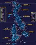 L’arcipelago si compone di circa 1.190 isole coralline suddivise in 26 atolli
