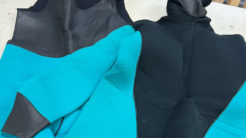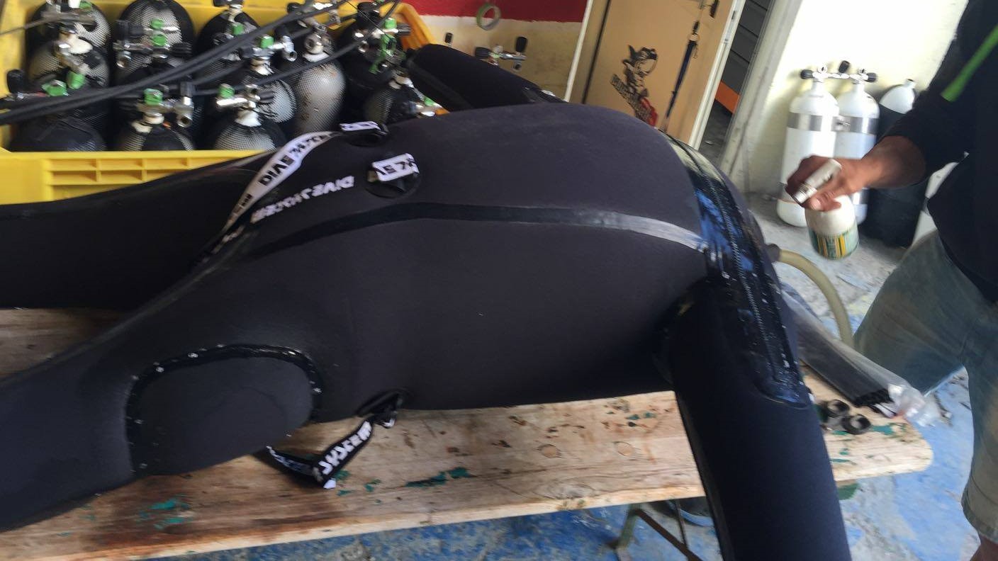 9 – Manutenzione attrezzatura subacquea: la muta in neoprene sembra di cartone.